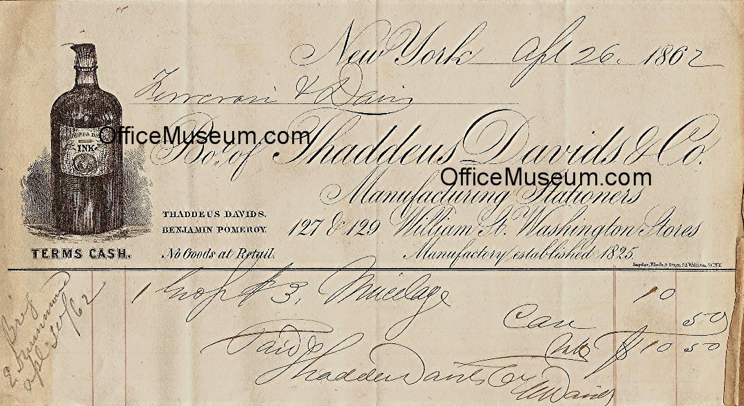 The Hagley Museum and Library has 1847 and c. 1858 ads for writing