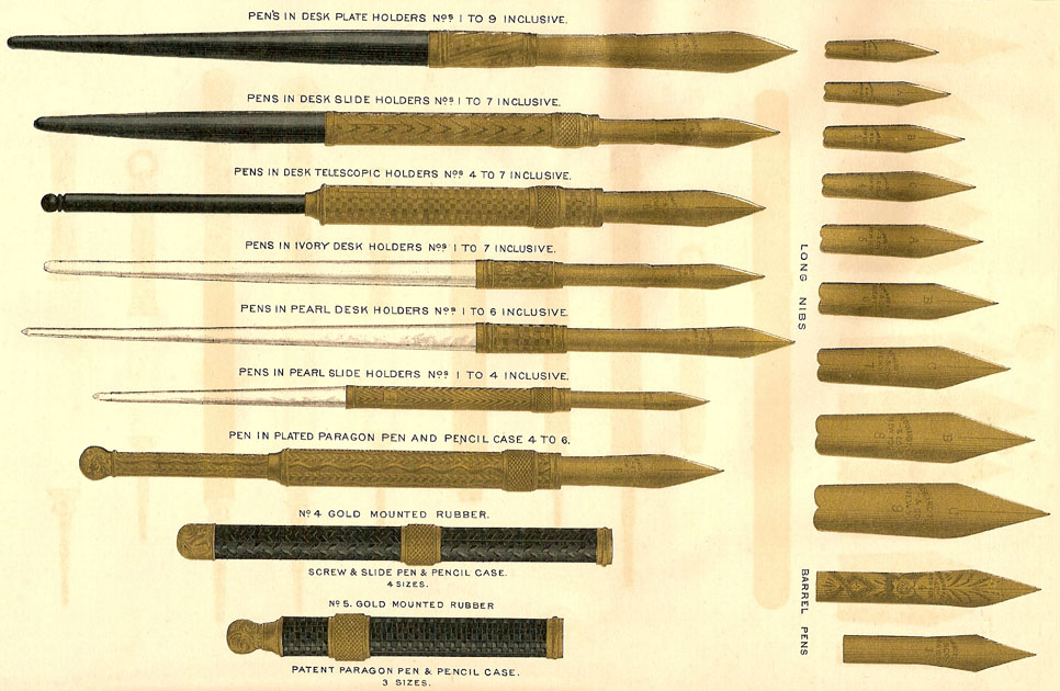 Sons, London. Steel pens made by Gillott and gold pens made by Hayden were