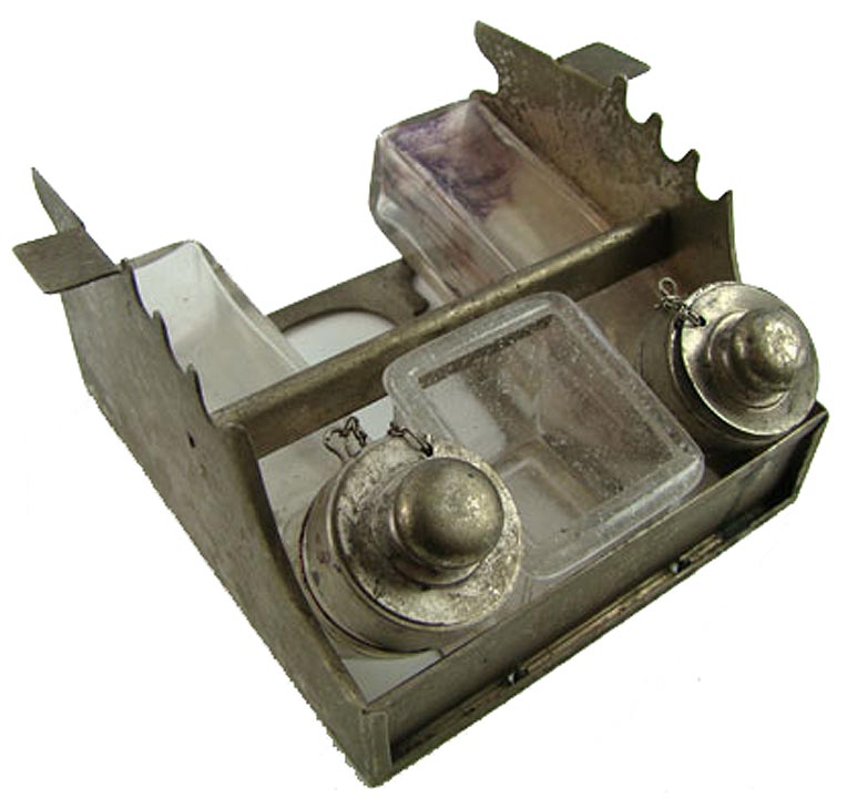 Eureka Pen Cleaner with Inkstand, 1890 ad "The chemical properties of